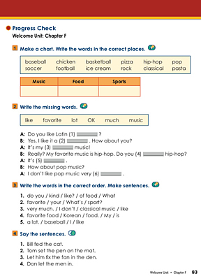Prior to using the formal assessment materials for the Welcome Unit Chapters, students have a chance to assess themselves using the Progress Check at the end of each Chapter.