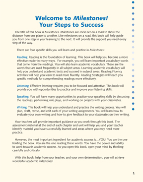 The front and back sections of Milestones Introductory contain a wealth of resources.