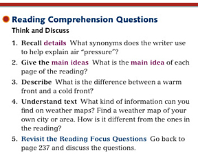 The Reading Check box includes representative questions roughly based on Bloom's taxonomy, or the "Question-Answer Relationship" sequence.