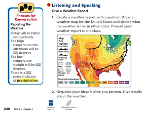 Functional language support is provided in the Phrases for Conversation box. Sentence frames give students a boost when needed.
