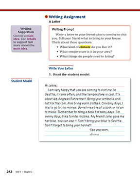 Students have already written an informal letter in Unit 1; they now build on their skills with a more complex letter-writing assignment.