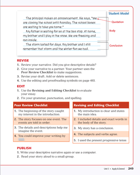 A Peer Review Checklist and a Revising and Editing Checklist remind students of the key elements they have been learning.
