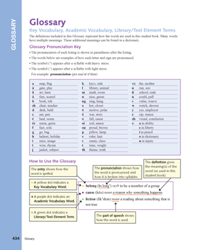 In the back of each Student Edition is a Glossary of the vocabulary taught in Milestones.