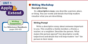 Students are provided with a Student Model of a descriptive essay.