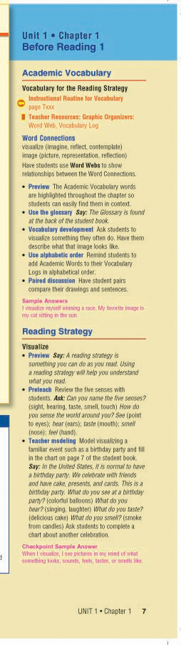 The academic vocabulary taught here is recycled throughout the Chapter, especially in the Reading Strategy section.