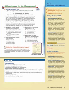 This end-of-unit assessment tool allows them, and you, to evaluate where they stand in mastery of the Unit's content, prior to administering the formal summative Unit exam found in the Milestones Assessment Book or on the Teacher's Resource CD-ROM and on the MilestonesTracker Online Assessment and Remediation System.