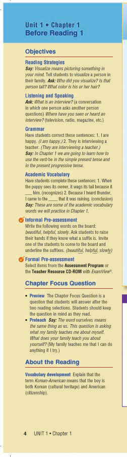 Once you have completed working with the Preview the Unit pages, your students will be ready to begin Chapter 1.