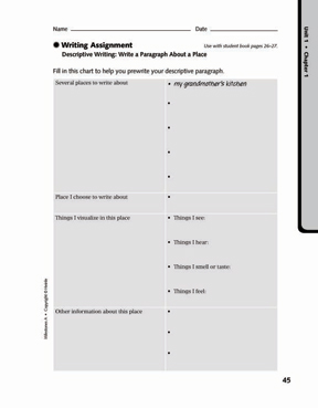 Here students are given step-by-step support to create their own writing product as assigned in the Student Edition.