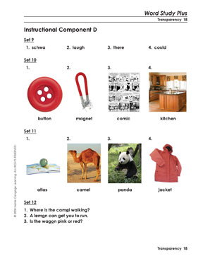 Word Study Plus Transparencies are full-color instructional tools that focus on phonemic awareness and phoneme/grapheme correspondence.