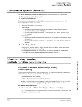 The Placement Assessment determines eligibility and placement point in the intervention component.