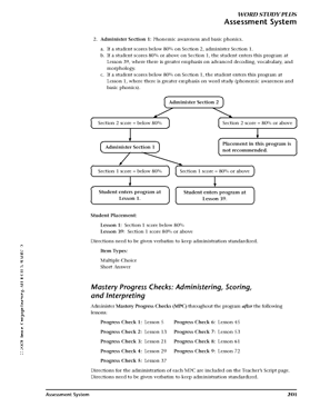 Nine Master Progress Checks test student achievement at regular intervals through the curriculum.Complete teacher scripts are provided for the tests. These determine student proficiency and readiness to move to the next lesson.