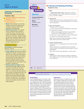 For the Listening and Speaking Workshop, you will review, model, explain, and guide.
