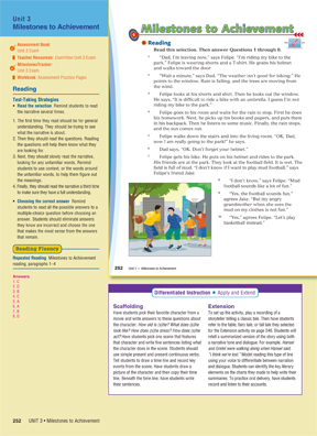 This end-of-unit assessment tool allows them, and you, to evaluate where they stand in mastery of the Unit's content, prior to administering the formal summative Unit exam found in the Milestones Assessment Book or on the Teacher's Resource CD-ROM.